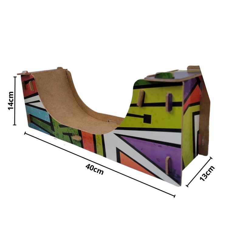 Rampa Skate Dedo Radical Half Pipe - Brincadeira Criança Informações do Produto: A rampa skate de dedo radical rampa half pipe é ideal para os pequenos se aventurar e fazer manobras incríveis. Treine e aprenda novas manobras radicais e seja um campeão de manobras no skate de dedo. Não acompanha skate de dedo. Itens inclusos: 1 rampa Half pipe. Dimensões aproximadas do produto: 14cm x 13cm x 40cm. Recomendado: Não recomendado para crianças menores de 3 anos de idade. Alimentação: Não necessita. Material composição: Madeira mdf. Certificação: Registro compulsório inmetro 006331/2021. Ocp 0133. Garantia do Fabricante: 03 meses contra defeitos de fabricação. Aviso: Todas as informações divulgadas são de responsabilidade exclusiva do fabricante/fornecedor. As cores dos tecidos ou dos produtos podem variar entre as imagens mostradas acima ou fotos da embalagem. Imagens meramente ilustrativas.