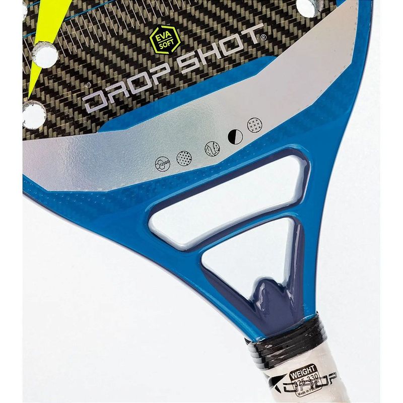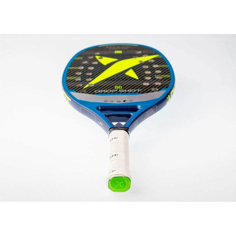 Raquete de beach tennis DROP SHOT SPECTRO 9.0 BTApresentamos a raquete SPECTRO 9.0, uma obra-prima de tecnologia e desempenho da Drop Shot, projetada para elevar o jogo dos jogadores mais exigentes a novos patamares de excelência.A tecnologia EVA Soft é o coração desta raquete, oferecendo uma borracha com grande elasticidade e leveza, proporcionando uma sensação única de potência e conforto durante o jogo. As lâminas Drop Shot com EVA Soft não apenas oferecem durabilidade excepcional, mas também um acabamento superior da lâmina e uma absorção de vibrações incomparável.Com o Carbon 3000, a SPECTRO 9.0 apresenta tubos de aço-carbono combinados com a tecnologia Hotmelt e tecidos de carbono 3K, proporcionando uma jogabilidade excepcional e uma força extra que eleva o desempenho em quadra.O Silicone Grip Channel, um canal na empunhadura da raquete com revestimento de cortiça super absorvente de 2 mm, reduz as vibrações na área onde o jogador segura a raquete, garantindo um jogo mais seguro e agradável.O Cork Cushion Grip, sistema anti-vibração com uma folha de cortiça na zona do punho, combinado com o Twin Tubular System, proporciona uma homogeneidade excepcional em todas as áreas da face da raquete, garantindo maior rigidez e evitando a perda de energia devido à distorção da armação.A textura 3D-Face, em forma de losango, oferece um giro adicional à bola em rebatidas agressivas, tornando-a especialmente adequada para jogadores com um estilo de jogo mais ofensivo.Com a SPECTRO 9.0, você experimentará o máximo desempenho e precisão em cada golpe, elevando sua experiência no beach tennis a um novo patamar de excelência.TECNOLOGIAS:EVA SOFT: É uma borracha cuja principal propriedade é grande elasticidade e leveza, proporcionando maior potência e um sweet spot mais amplo que proporciona maior conforto no jogo, devido à sua elasticidade. As lâminas Drop Shot com Eva Soft, possuem maior durabilidade, melhor acabamento da lâmina e muito boa absorção de vibrações. ?TWIN TUBULAR SYSTEM: Todas as nossas raquetes são fabricadas com tecidos tubulares duplos impregnados com resinas de máxima durabilidade, conferindo-lhe homogeneidade em todas as áreas da face e proporcionando maior rigidez, assim não se perde energia do golpe devido à distorção da armação.?CORK CUSHION GRIP: Sistema anti-vibração, que combinado com os outros sistemas que disponibilizamos, tornam as nossas raquetes ideais para jogadores com lesões crônicas. É constituído por uma folha de cortiça localizada na zona do punho, evitando assim que as vibrações cheguem à mão do jogador.?SILICONE GRIP CHANNEL: Um canal na empunhadura da raquete, onde é inserido um pedaço de silicone com revestimento de cortiça super absorvente de 2 mm, para reduzir as vibrações apenas na área onde o jogador segura a raquete. As raquetes Drop Shot, com esta tecnologia, permitem-lhe desfrutar de um jogo mais seguro e agradável.?3D –FACE: Textura 3D em forma de losango, desenhada exclusivamente pela Drop Shot, para dar maior giro à bola em rebatidas onde o giro máximo deve ser dado à bola, especialmente pensado para jogadores agressivos em seu jogo. ??