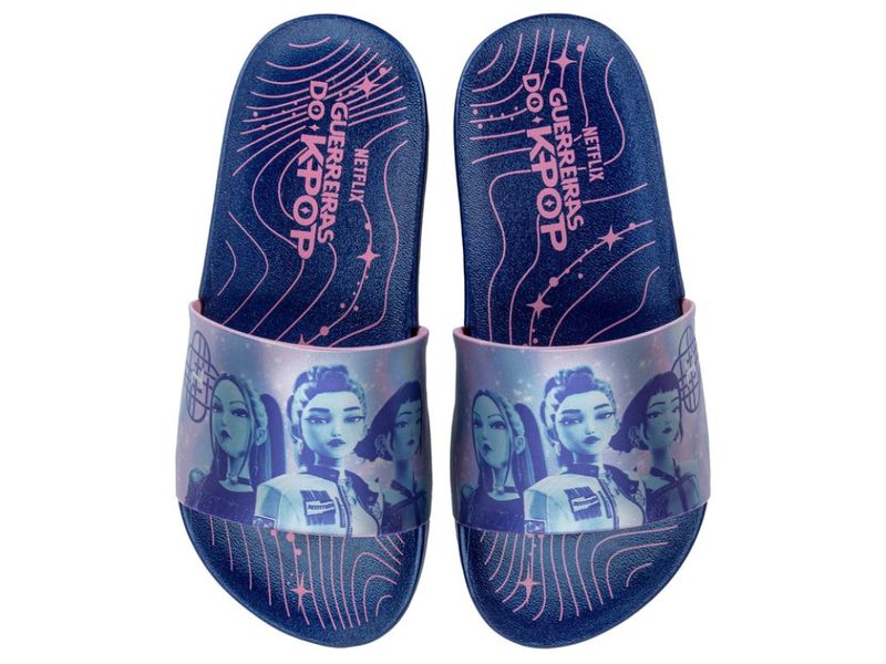 Produto Grendene Kids com licença K-POP, inspirado no universo vibrante e de alto impacto do pop coreano um fenômeno global que influencia moda, música e comportamento em todo o mundo. O design moderno e lúdico apresenta degradês, brilhos e efeitos metalizados na sola e no cabedal, traduzindo a energia, o ritmo e o visual futurista característicos do K-POP. Os personagens ganham cores, poses e estilos únicos, estimulando a expressão individual e a identificação com o público infantil. Com acabamentos metalizados e detalhes inspirados em videoclipes e performances icônicas do gênero, o produto entrega uma experiência cheia de atitude, brilho e personalidade.