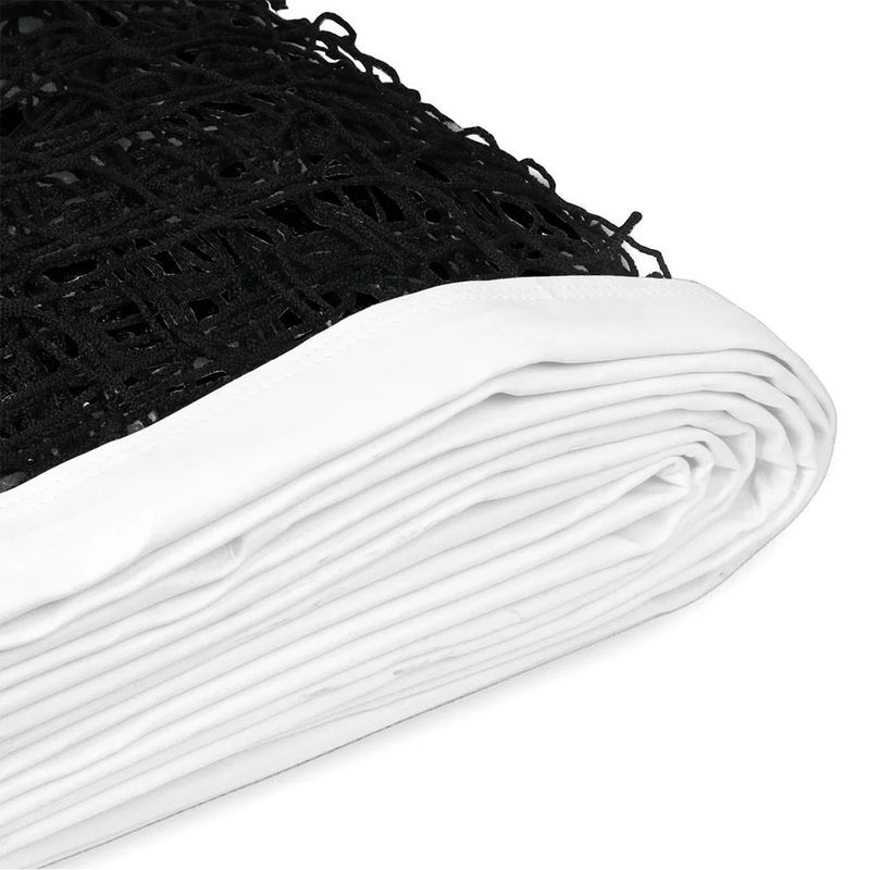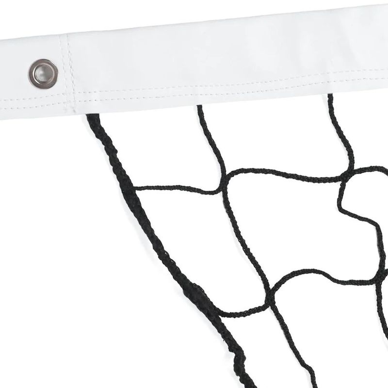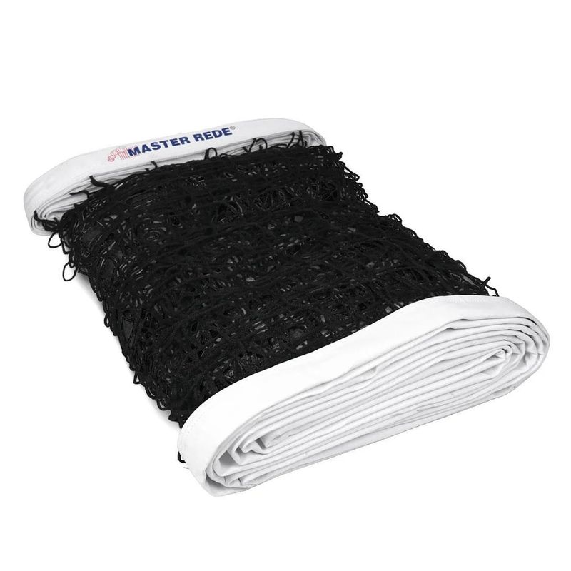 - Faixa inferior com 5 cm de largura fabricada em matéria prima de PVC Emborrachada cor Branca, com fio guia grosso por dentro que serve para amarrar junto aos postes de forma a esticar e tensionar a rede.