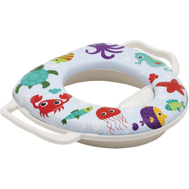 Redutor de assento macio em plástico e PVC atóxico. Redutor de assento infantil fundo do mar é produzido pela Buba com materiais de ótima qualidade, acabamento e repleto de detalhes. Incluido na embalagem 1 assento redutor macio.