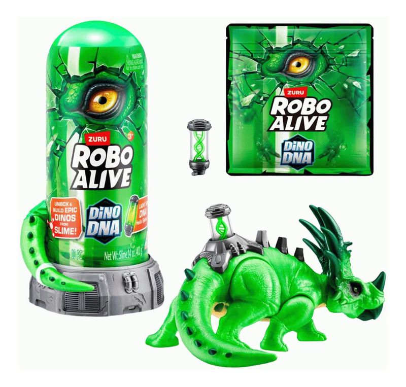 Mergulhe no fascinante mundo da paleontologia com o Robo Alive Dino DNA. Com a inovadora Coluna Helix de DNA Iluminada, você pode construir dinossauros únicos e ver o DNA deles ganhar vida enquanto monta as partes. A emoção começa ao buscar entre o slime pegajoso, encontrando as peças do dinossauro para montar criaturas que rugem e se movem. São três dinossauros diferentes para montar, oferecendo uma experiência interativa que combina aprendizado e diversão. Se você ama dinossauros e adora explorar o passado de maneira divertida, o Robo Alive Dino DNA é o brinquedo perfeito. Torne-se um verdadeiro paleontólogo, crie dinossauros incríveis e viva uma aventura emocionante!