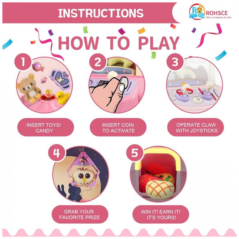 A Máquina de Garra Mini Arcade ROHSCE Rosa transforma qualquer ambiente em um divertido fliperama caseiro. Este brinquedo elétrico permite que crianças e adultos vivenciem a emoção de um jogo de arcade real, tentando agarrar seus prêmios favoritos com a garra robusta que garante segurança ao levantar objetos de pequeno porte. Equipado com luzes LED vibrantes e som ajustável, oferece horas de entretenimento, estimulando a coordenação motora, percepção espacial e concentração. Fácil de recarregar com doces, mini brinquedos ou cápsulas, o aparelho possui movimentação de 360° e garra firme, proporcionando uma experiência realista e divertida. Com alimentação dupla, por USB ou 4 pilhas AA (não inclusas), a máquina é prática para uso em casa, festas e encontros familiares, sendo ideal como presente de aniversário ou datas especiais.