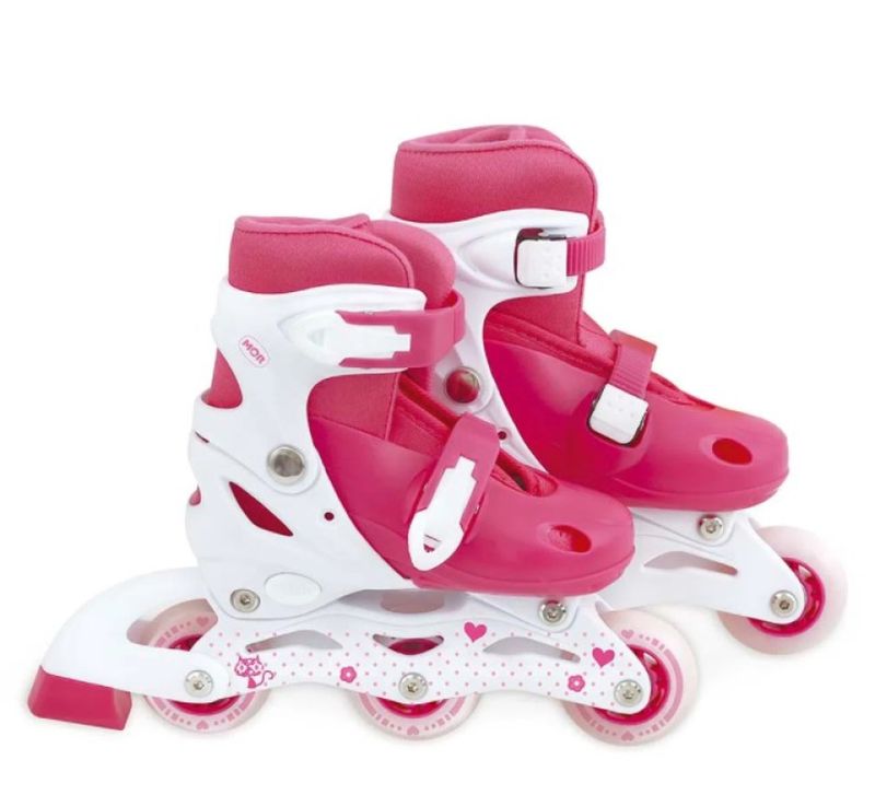 Chegando para divertir e incentivar a prática de esportes para a garotada o Roller Infantil Rosa da Mor foi produzido com freio no pé direito e fivela para maior segurança ao utilizar o produto. Possui bota ajustável que varia do tamanho 30 ao 33. Seu Cuff é feito em polipropileno, o que possibilita manobras em que se pode dobrar o pé com segurança e sem risco de torcê-lo. É ideal para o público infantil. Produzido com 3 rodas em PVC e diâmetro de 64 mm é a nova sensação da galera que curte esportes e aventura. Recomenda-se peso máximo de 50 Kg.