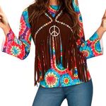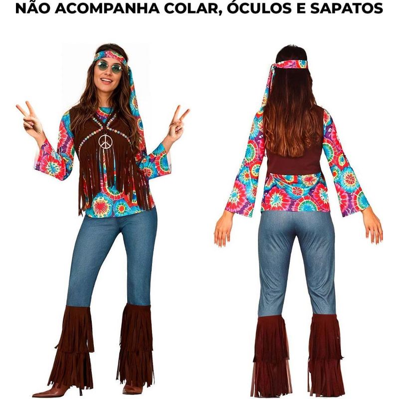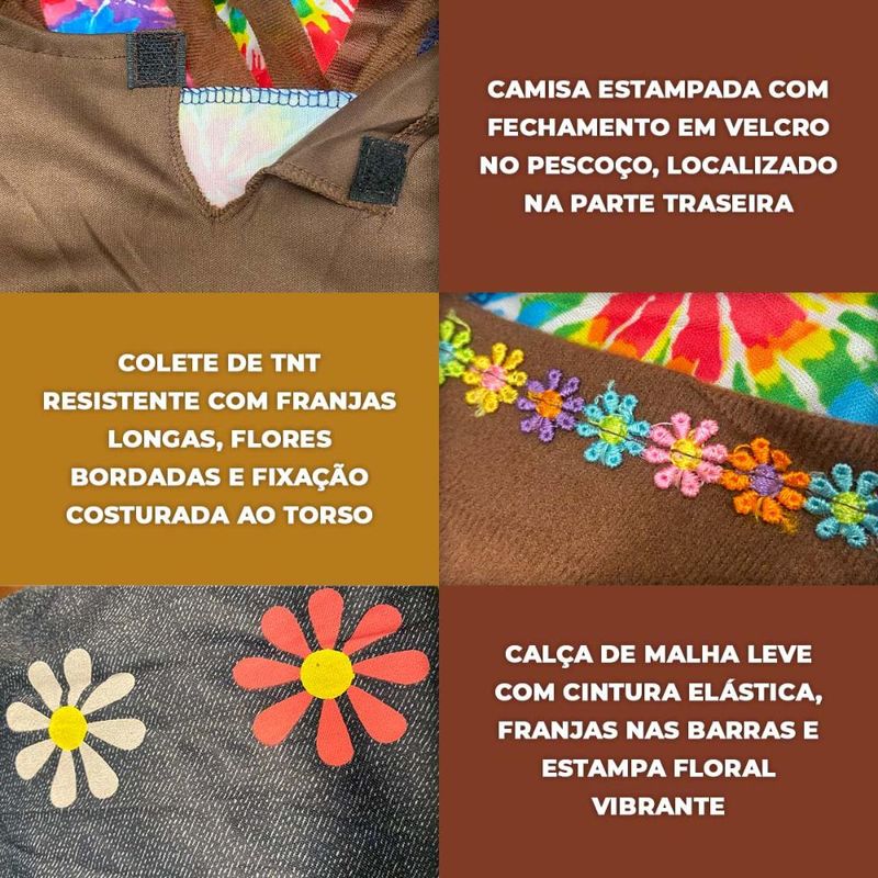 Volte no tempo para os anos 60 e 70 com a Fantasia Hippie Adulta! Este conjunto é perfeito para festas temáticas, carnaval e eventos de Halloween. A fantasia é composta por uma camisa estampada, com colete com franjas, faixa de cabeça estampada e uma calça com elástico na cintura e franjas. A camisa e a faixa possuem estampas vibrantes, típicas da época, e o colete com franjas adiciona um toque autêntico ao visual. Feita com material leve e confortável, a fantasia garante liberdade de movimento para que você possa dançar e se divertir a noite toda. Com este traje, você vai espalhar o amor e a paz por onde passar, se tornando o centro das atenções da festa!Camisa estampada e colete com franjas Calça de com elástico na cintura e franjas Tecido leve e confortável Ideal para festas temáticas de anos 60, 70, Carnaval e Halloween