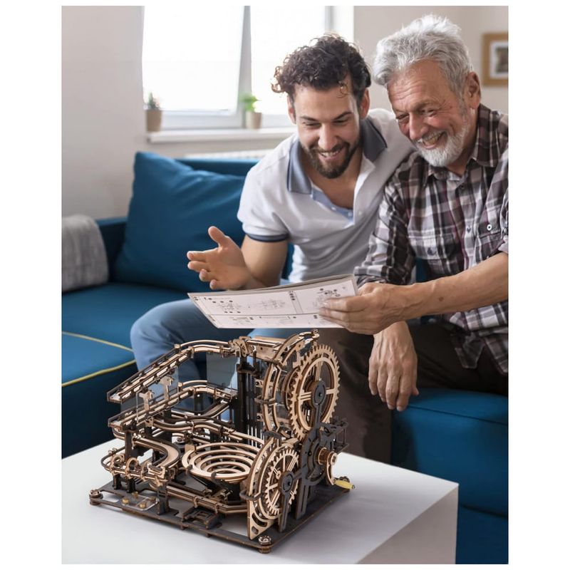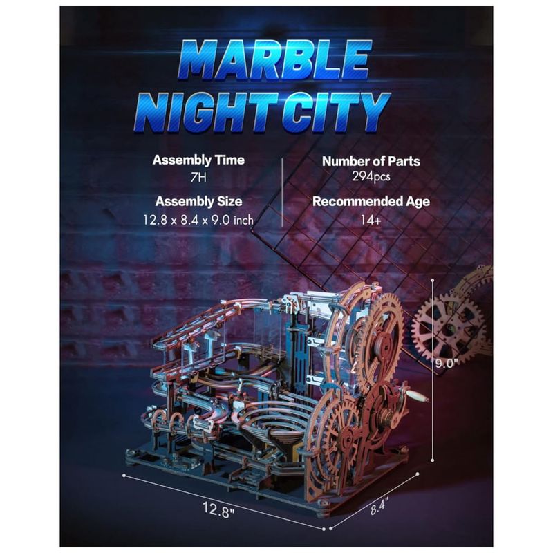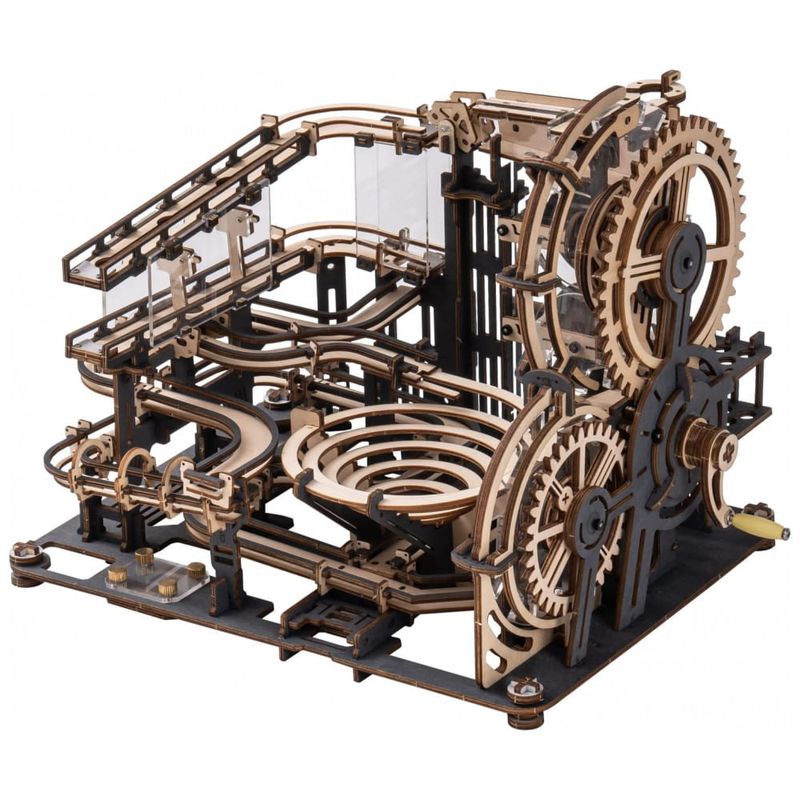 Todos os s modelos de corrida de mármore O kit de modelo de quebra cabeça de madeira run3D de 294 peças é inspirado na máquina de Rube Goldberg, com o objetivo de assistir bolas de gude descendo slides cheios de torções e voltas loucas através de dispositivos complicados e divertidos