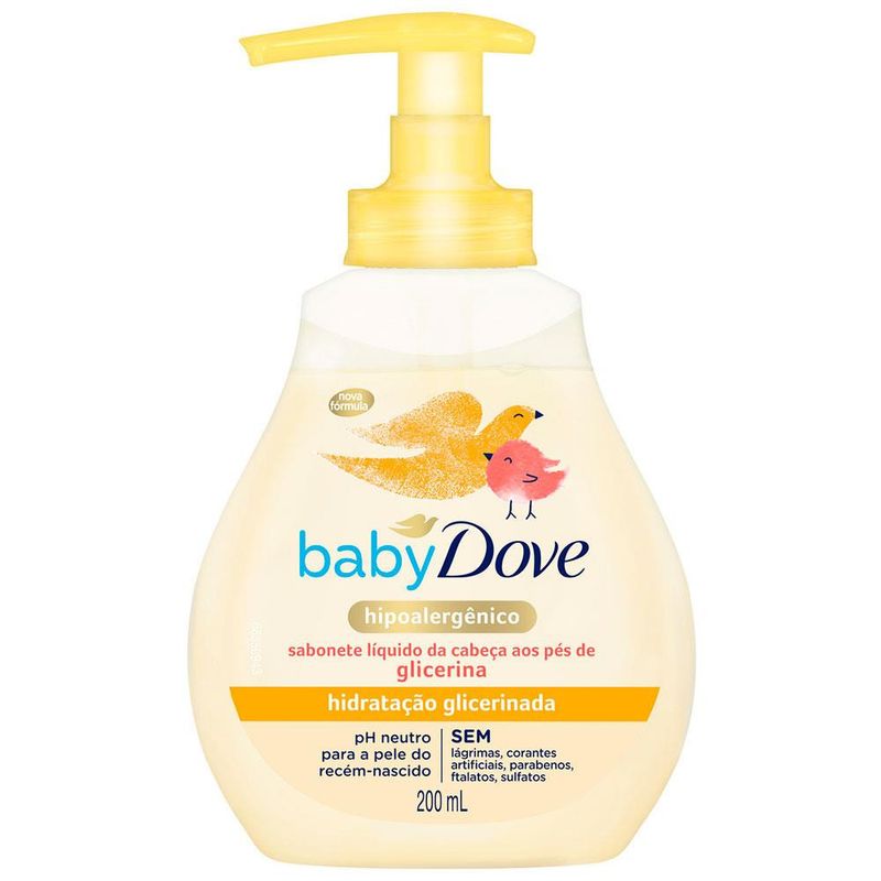 Baby Dove Hidratação Glicerinada mantém a pele do bebê macia, limpa suavemente da cabeça aos pés e proporciona um perfume suave desenvolvido para a delicada pele do bebê, minimizando os riscos de alergia.