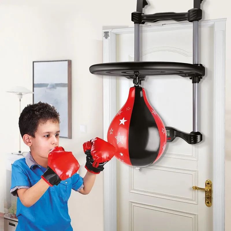 -Este saco de boxe pode ser facilmente instalado na porta, proporcionando momentos de diversão e treino no conforto de casa.