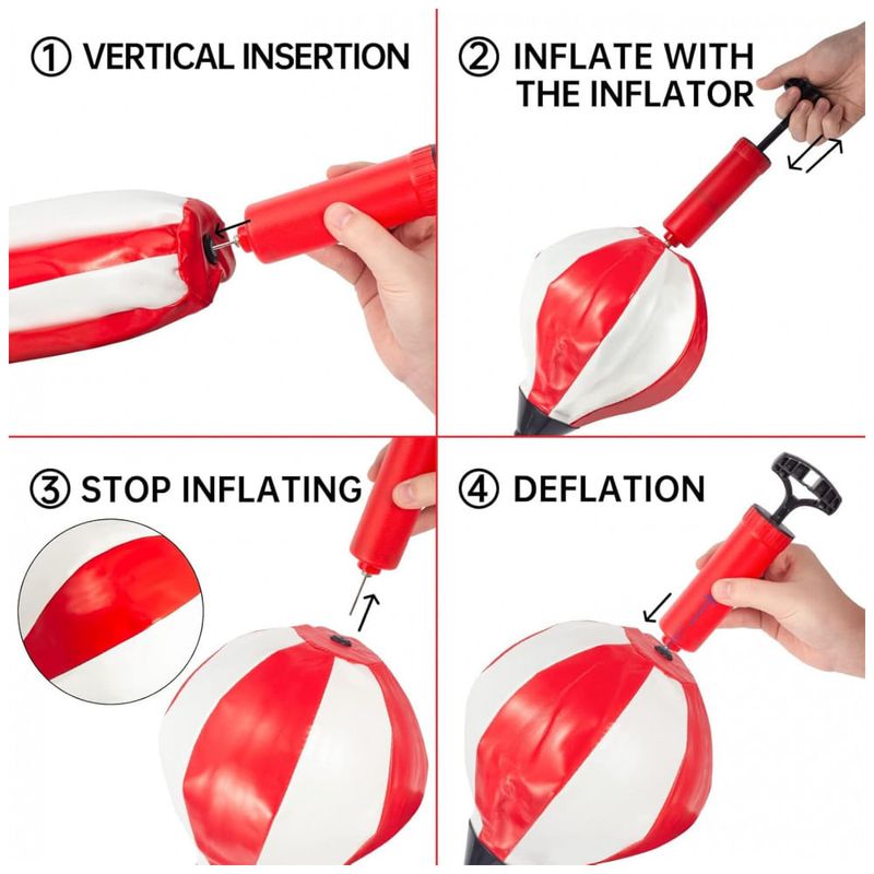 Itens inclusos na embalagem: 1 bola de boxe inflável, 2 pares de luvas infantis, 1 base, 1 haste ajustável, 1 bomba de ar, acessórios de montagem?