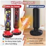 A estrutura é produzida em PVC com espessura de 0,5 mm, com base larga para enchimento com água ou areia, proporcionando estabilidade durante socos e chutes. O conjunto acompanha luvas, bomba de ar e funil para abastecimento de água, facilitando a instalação em ambientes internos ou externos planos.?