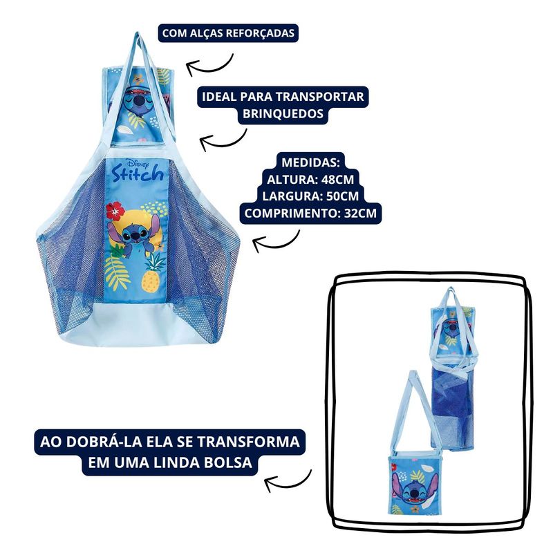 "Sacola Multiuso para Brinquedos ideal para praia Stitch Disney BabyGo