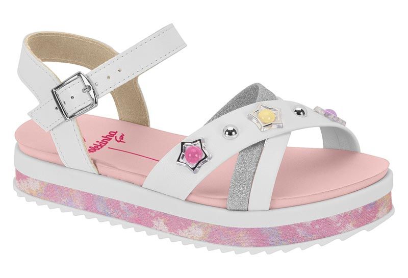 A Sandália Infantil Molekinha Estrelas é confeccionada em material sintético com solado antiderrapante e fechamento na lateral da sandália com fivela de metal. A entressola é mais alta e possui uma faixa com desenhos de estrelas nas laterais. Nas tiras superiores também tem pin de estrelas coloridas. Esse modelinho é perfeito para os dias mais quentes e combina super com saias ou vestidos. Gostou? Garanta já!