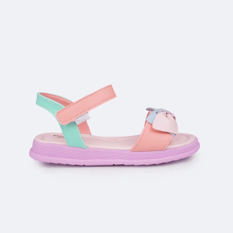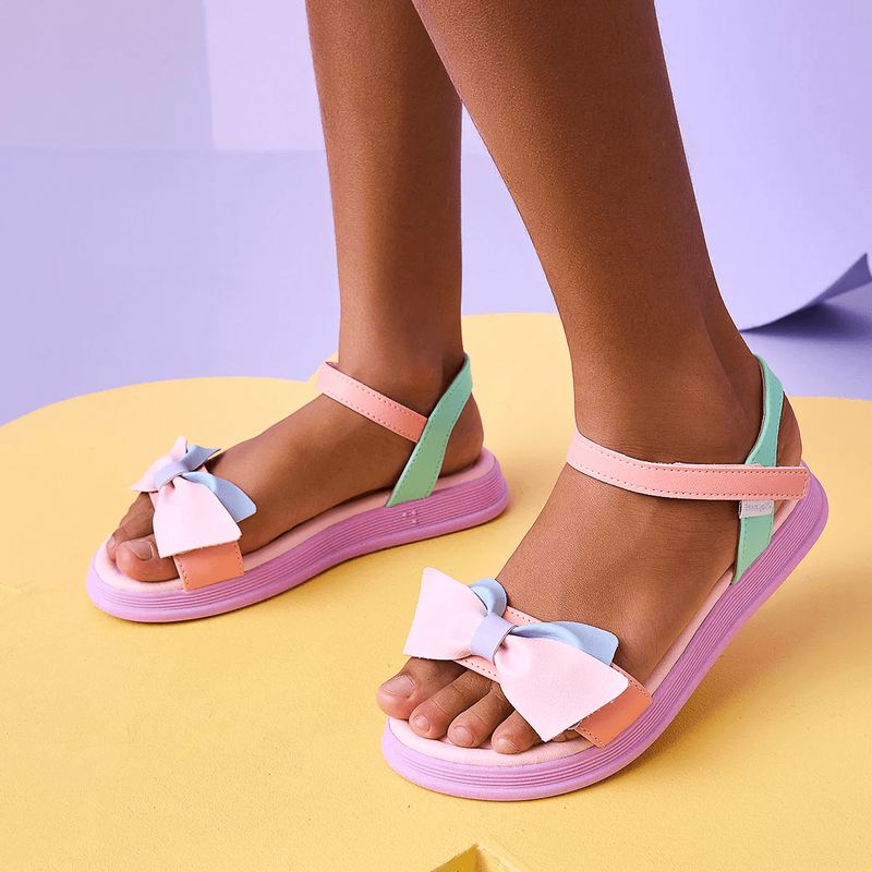 Sandália infantil feminina em sintético colorido em tons candy colors com lacinho na parte frontal, delicada e confortável para todos os momentos. Sandália com palmilha anatômica, proporcionando conforto e segurança aos pezinhos. Solado com pequena elevação em micro expandido, material leve com muita aderência e estabilidade, além da flexibilidade, resistência térmica e alto desempenho antiderrapante. Sandália infantil com calce fácil através de velcro, muito prática para a autonomia das meninas ao calçar! A sandália vem com escrita em braile nas laterais, mostrando o lado correto para as meninas cegas ou com baixa visão.