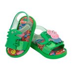 Diversão garantida com a Sandália Infantil para menino da Peppa Pig e do George, na cor verde e com palmilha estampada essa Melissinha pode ser também unissex, afinal, as crianças adoram a turma toda da Peppa.