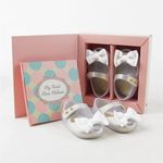 Perfeita para chá de bebê ou para levar à maternidade, seu tom branco combina com diversos looks e deixará a pequena ainda mais encantadora! Além de linda em vem um caixinha toda lúdica e acompanha um livro especial para ser preenchido comos primeiros passos do bebê e que pode ser guardado para relembrar os lindos momentos.