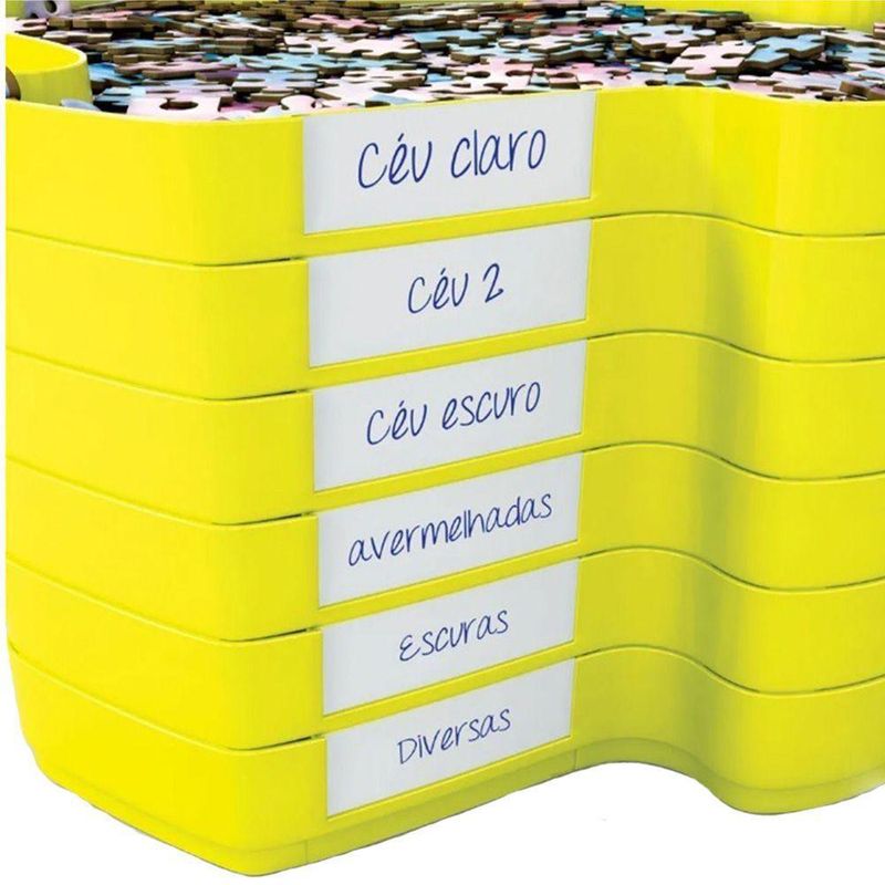 O Separador de Peças é o acessório ideal para separar as peças do seu quebra-cabeça por cor, imagem ou formato, além de conservá-las e protegê-las durante a montagem. As bandejas, em formato de peça de quebra-cabeça, são resistentes, empilháveis e encaixam umas nas outras durante a utilização.