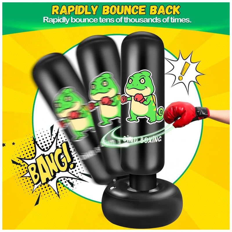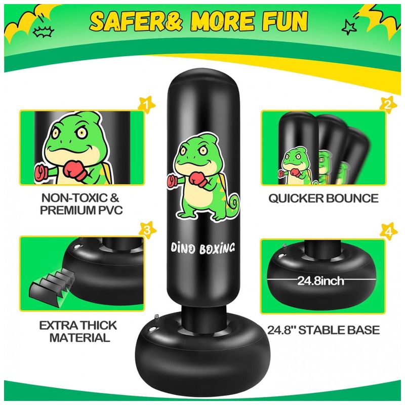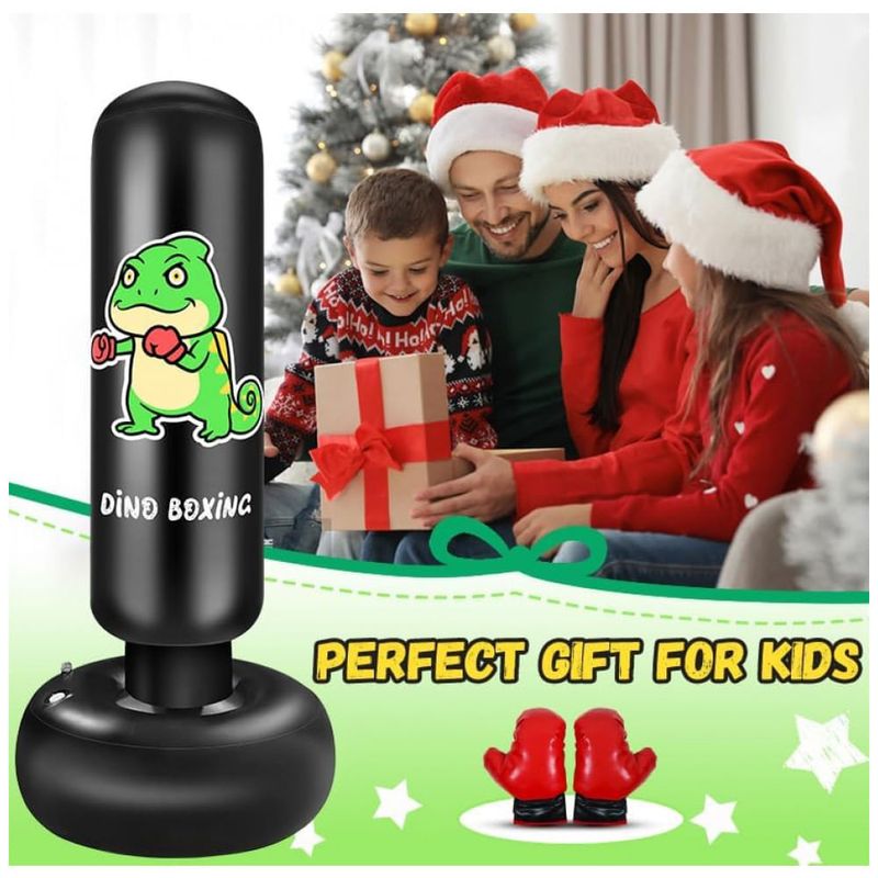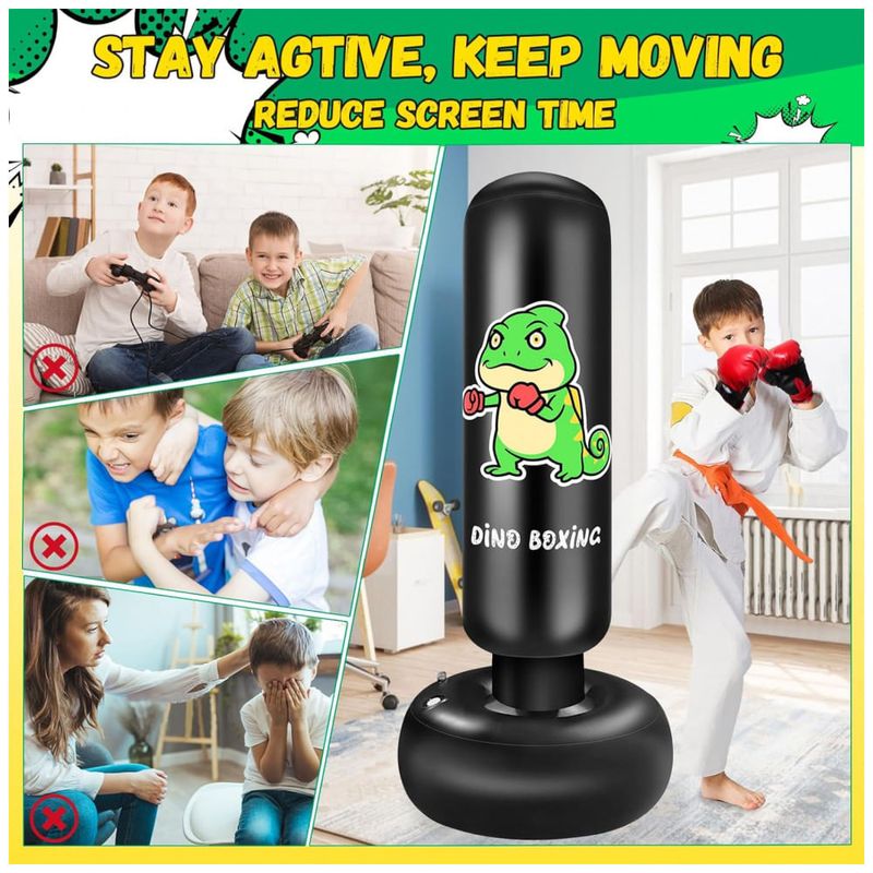 Saco de pancadas premium para crianças, confeccionado em PVC de alta qualidade com material espesso de 0,35 mm para maior durabilidade. Sua estrutura dupla oferece uma vedação eficiente contra vazamentos de ar e água. Pode apresentar odor inicial, mas basta arejar por 12 dias para eliminar o cheiro. Com resposta rápida, o saco retorna imediatamente após o impacto, ideal para treino contínuo de socos e chutes para crianças de 3 a 12 anos, proporcionando uma divertida experiência de boxe. A base larga e reforçada oferece grande estabilidade, com 63 cm de diâmetro, garantindo segurança e resistência, além de estimular o interesse dos pequenos por esportes. Fácil de montar: basta preencher a base com água ou areia para fixação e inflar com bomba de ar (não incluída). Após o uso, esvazie e dobre para guardar. Caso apresente furos, o kit acompanha remendos para reparos. Perfeito para uso em casa, quintal, academia ou qualquer ambiente, é portátil e adequado para crianças e adultos. Este brinquedo esportivo promove a atividade física, ajuda a aliviar o estresse e a raiva de forma saudável, incentivando o afastamento das telas e estimulando diversão e movimento. Um presente energético que estimula o desenvolvimento físico e o bem-estar das crianças.