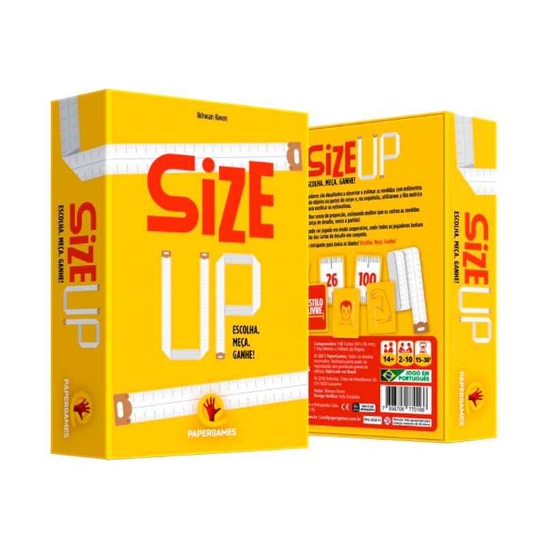 Em SizeUp os jogadores são desafiados a observar e estimar as medidas (em milímetros ou centímetros) de objetos ou partes do corpo e, na sequência, utilizarem a fita métrica inclusa no jogo para verificar as estimativas.