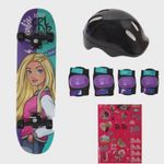 Kit Skate com Acessórios - Barbie Girl - Fun! Skate Radical de madeira com shape anti-derrapante. Acompanha kit de segurança com capacete com alça ajustável, cotovelerias e joelheiras com velcro. Capa com ziper (plástica) proporcionando maior facilidade na locomoção para qualquer lugar desejável.