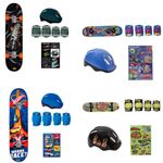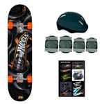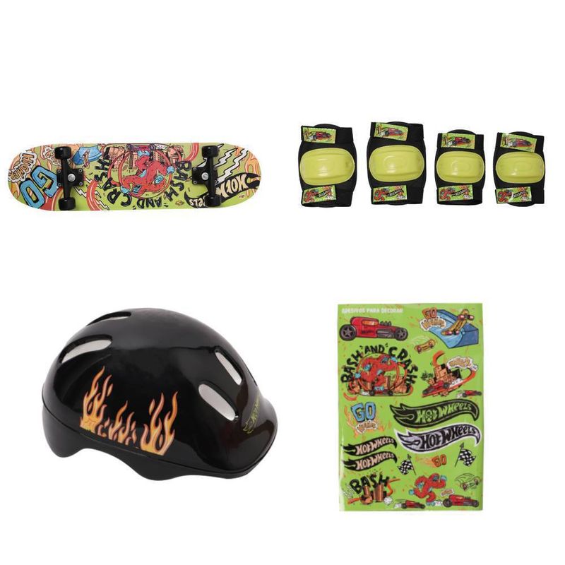 Contém: 1 Skate, 1 Par de Joelheiras, 1 Par de cotoveleiras, 1 Capacete, 1 Cartela de adesivos e 1 Bolsa para transporte
