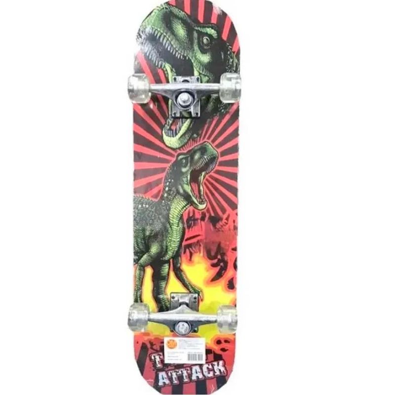 Skate com Acessorios e Kit Protecao - T-Rex - DM Toys: O skate com acessorios DM Radical e irado e com estampa muito legal de T-Rex. Ele vem com acessorios para andar com seguranca: capacete, par de joelheiras e par de cotoveleiras. O Skate Iniciante e ideal para pessoas que estao comecando a praticar o esporte. Com rodas de 50 mm de diametro, fabricadas em poliuretano (pu) e mais macias, ajudam a amortecer as vibracoes do asfalto. Seu truck, em aluminio, e duravel e resistente. Peso recomendado 50 kg. Torna-se uma otima opcao de presente! Da uma olhadinha nesses diferenciais: - Detalhado, atrativo e chamativo - Robusto e cheio de detalhes - Brinquedo projetado para estimular a movimentacao da crianca - O Skate e super moderno e tem cores, desenhos e estampa marcante! - As 4 rodas dao um maior equilibrio deixando a brincadeira mais segura. - Produzido com materiais da mais alta qualidade, os skates roubam a cena pelo seu conforto e praticidade, seu sistema reforcado promovem uma melhor fixacao e estabilidade ao pe do skatista. - Garante a brincadeira e desenvolvimento criativo, percepcao visual, coordenacao motora, concentracao, e facilita no reconhecimento de cores e formas - Fielmente representado e projetado pela DM Toys Informacoes: • Produto: Skate com Acessorios e Kit Protecao Sortido • Marca: DM Toys • Linha: DM Radical • Tamanho: 78.5 cm • Categoria: Skates • Peso maximo suportado: ate 70 kg • Tipo: Skate Infantil • Conteudo: 01 skate, 01 capacete, 01 par de joelheiras e 01 par de cotoveleiras • Recomendacao: para criancas a partir de 06 anos de idade Especificacoes: • Referencia: DMR6188 TREX • Codigo de Barras: 7899205961888 • Embalagem (C x A x L): 78,5 x 13,5 x 21 cm • Embalagem (Peso): 2.380 kg • Registro: CE-BRI/OCP0019 - N032/20 BR-032/20 NBR NM 300/2002 • Composicao / Material: Madeira, plastico e metal • Certificado: Orgaos Autorizados - OCP´S (Organismos de Certificacao de Produtos) BENEFICIOS DE BRINCAR: - Eleva a autoestima - Exercita a memoria - Estimula o raciocinio - Exercita o imaginario - Desenvolve a criatividade - Desenvolve percepcao visual - Desperta a atencao e curiosidade - Desenvolvimento neuropsicologico - Estimula habilidades motoras basicas - Incentiva a comunicacao e linguagem - Desenvolve aspectos emocionais e afetivo - Estimula o reconhecimento de formas e cores Aviso: - As imagens sao meramente ilustrativas - Os tamanhos e medidas sao aproximados - As cores e estampas dos produtos podem ter variacoes - As informacoes sao de responsabilidade do fabricante ou fornecedor