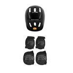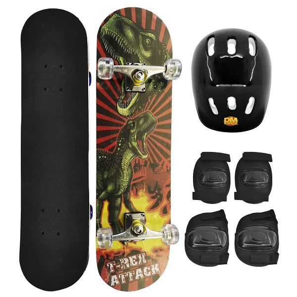 Acompanha equipamentos de segurança, como capacete, joelheira e cotoveleira.
