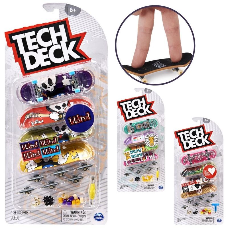 - Tech Deck traz para você o verdadeiro negócio com escalas autênticas de empresas de skate reais! Cada um apresenta gráficos legítimos das maiores empresas de skate do mundo, incluindo Blind, Baker, Flip, Finesse, Santa Cruz, Plan B, Sk8mafia, Toy Machine e muito mais. Este 4-Pack inclui 4 placas que você pode construir da maneira que quiser. Recrie suas falas favoritas e expanda seus truques consultando dicas de truques on-line em techdeck.com. À medida que você cria sua coleção, compare-a online com a ferramenta de colecionador interativa do Tech Deck. Há uma tonelada de Decks para colecionar! Ride, flip e grind com escalas oficiais de empresas de skate reais! O Tech Deck Ultra DLX 4-Pack é para crianças, colecionadores e amantes de skate com 6 anos ou mais. Comece sua coleção e domine seus truques de escala com o Tech Deck!