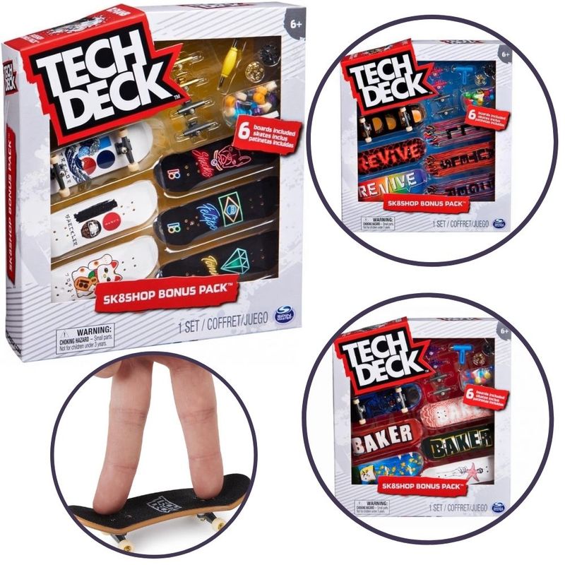 - Placas reais. Gráficos reais. Acrobacias reais. Faça truques épicos com as escalas autênticas do Tech Deck. Do nariz à cauda,as escalas Tech Deck são projetadas para replicar a sensação de um skate real. Cada escala apresenta gráficos das maiores empresas de skate do mundo. Colecione pranchas com designs icônicos de Blind, Baker, Primitive, Finesse, Santa Cruz, Plan B, Toy Machine e muito mais. Cada prancha vem com acessórios exclusivos, como folhas de decalques – ideais para criar uma prancha personalizada.