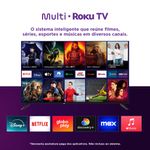 A Multi Roku TV 50 Smart e potente e não trava Seu processador QuadCore contribui para maior durabilidade da TV Com atualizações automáticas de software ela fica cada vez melhor e mais completa