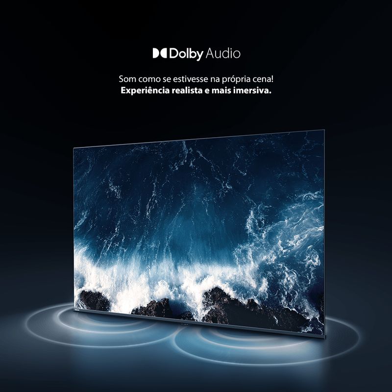 Áudio Envolvente: Com a tecnologia Dolby Audio e dois alto-falantes de 8W RMS, o som é claro, potente e imersivo.
