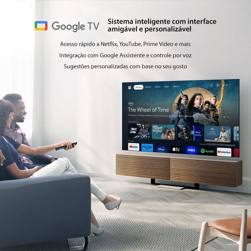 A tecnologia QLED e a resolução 4K proporcionam um brilho preciso e uniforme, com cores vibrantes e detalhes nítidos, oferecendo uma experiência visual de alta qualidade.