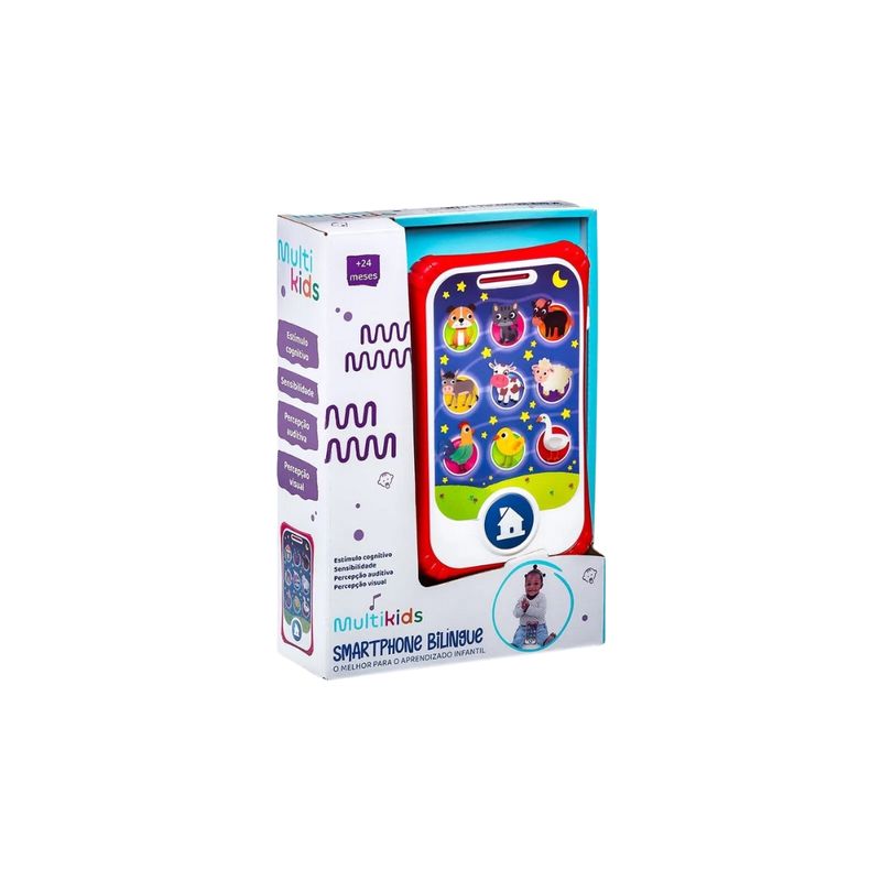Smartphone Bilíngue Animais - Multikids Informações do Produto: Descubra uma nova era de aprendizado com o smartphone bilíngue. Seu pequeno está pronto para explorar um mundo de conhecimento de maneira divertida e envolvente. Ao procurar um brinquedo educativo que estimule a criatividade e promova o desenvolvimento, muitos pais se deparam com a dificuldade de encontrar algo que seja verdadeiramente eficaz. É aí que o smartphone bilíngue se destaca, oferecendo uma solução única e inovadora. Introduza seu filho a duas línguas desde cedo, proporcionando um aprendizado natural e divertido. Com luzes vibrantes e sons de animais cativantes mantêm os pequenos engajados, promovendo o desenvolvimento cognitivo. Botões interativos emitem palavras educativas tanto em inglês quanto em português BR, tornando o aprendizado uma aventura emocionante. Auxilia na coordenação motora, cognitiva e percepção visual, preparando seu filho para futuros desafios. Itens inclusos: 1 smartphone. Dimensões aproximadas do produto: AxC 15,3cm x 9,3cm. Recomendado: Não recomendado para menores de 24 meses de idade. Alimentação: Utiliza 2 pilhas AAA de 1.5v. Pilhas inclusas. Material composição: Plástico. Certificação: Registro compulsório inmetro 002362/2023. Ocp 0098. Garantia do Fabricante: 03 meses contra defeitos de fabricação. Aviso: Todas as informações divulgadas são de responsabilidade exclusiva do fabricante/fornecedor. As cores dos tecidos ou dos produtos podem variar entre as imagens mostradas acima ou fotos da embalagem. Imagens meramente ilustrativas.