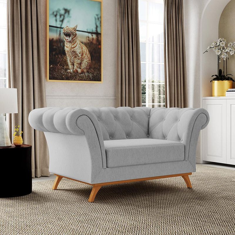 A introdução de peças vintage ou retrô voltou com tudo para as decorações nos dias de hoje. O Sofá 2 Lugares Para Sala de Estar Império 150 cm D02 Linho Cinza D-315 - Lyam Decor entrega muita imponência e é perfeito para compor um ambiente nesse estilo. Faz referência ao clássico de maneira muito singular, expressando muita nobreza e exuberância. Irá garantir um visual exclusivo e cheio de requinte ao seu Lar e deixará qualquer cômodo marcante!!