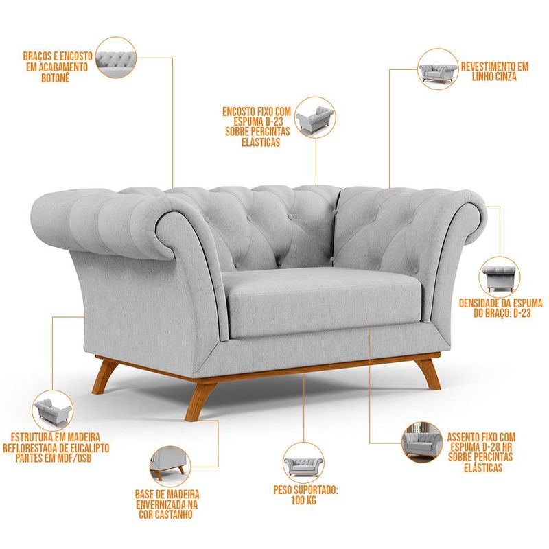 A qualidade superior também não passa despercebida, estruturado em madeira de eucalipto e revestido em linho, ele garante extrema excelência e sofisticação. Podendo ser disposto em salas de estar, recepções, hall de entrada, entre outras combinações bastante harmoniosas. Uma aposta certeira e cheia de sucesso para você. Garanta já o seu!!