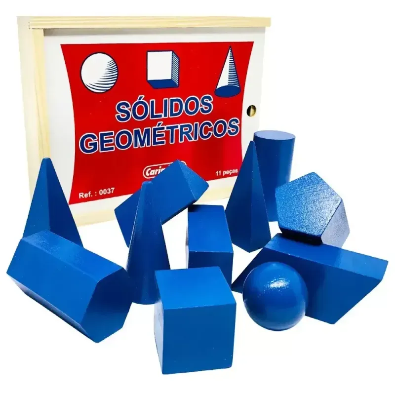 SÓLIDOS GEOMÉTRICOS COM 11 PEÇAS GRANDES DE MADEIRA EDUCATIVO