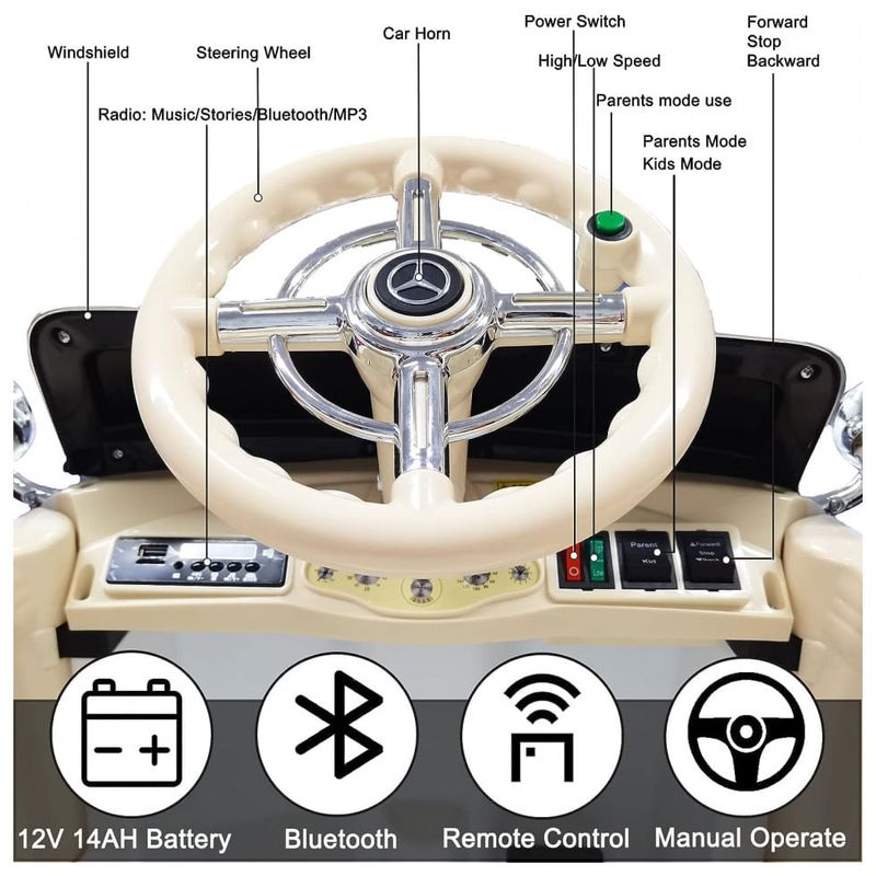 Aparência elegante e qualidade premium este carro de brinquedo é compatível com a Mercedes Benz. Apresentando um design de aparência vintage atraente e clássico, oferece aos seus pequenos prazer de condução superior e diversão real. Fabricado com um corpo de plástico PP durável e certificado pela ASTM F963. Esse é um presente perfeito para seus filhos no aniversário e no festival.