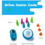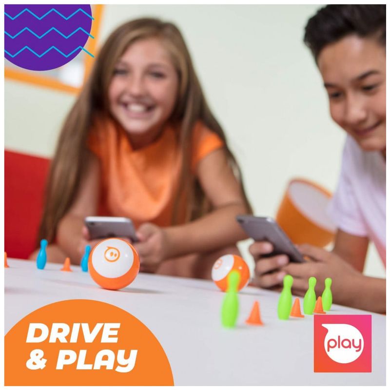 MODO DE CONDUÇÃO os alunos iniciantes podem dirigir e jogar jogos inspirados em STEM com o aplicativo Sphero Play gratuito. Arraste e dirija com o modo Joystick, puxe para trás e solte com o modo Slingshot ou incline e gire seu dispositivo móvel com o modo Inclinação. Incluídos com o Sphero Mini estão 3 cones de trânsito e 6 pinos de boliche para inspirar a diversão em pistas de obstáculos.
