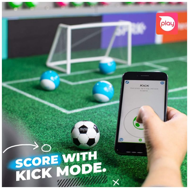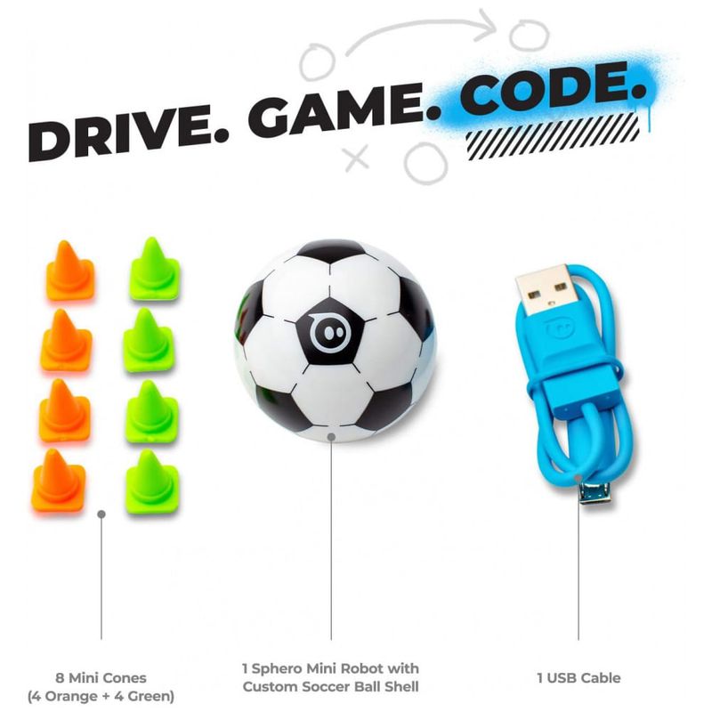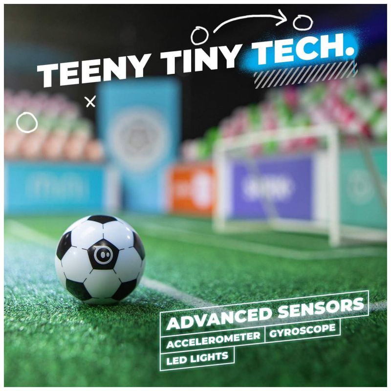 PONTOS GRANDES COM UM POUCO ROBÔ Este Sphero Mini com temática de futebol traz muita diversão em um pequeno robô programável do tamanho de uma bola de pingue pongue. Equipado com um giroscópio, acelerômetro e luzes LED coloridas, esta bola robótica habilitada para aplicativo permite que você dirija, jogue e codifique usando nossos aplicativos gratuitos.