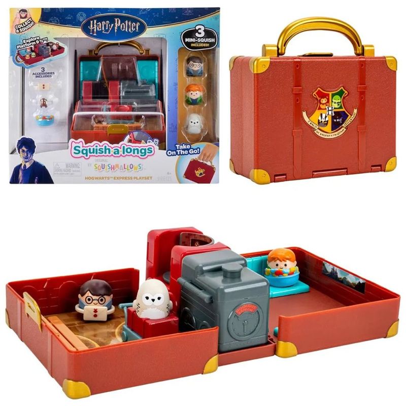 Embarque no universo mágico com o playset Hogwarts Express em forma de maleta, que se transforma em uma réplica encantadora da plataforma 9¾. A maleta abriga até 5 mini Squish e inclui compartimento secreto no trem para guardar acessórios. O conjunto conta com 3 personagens inclusos, banco interno detalhado e entrada giratória para maior diversão. Ideal para criar aventuras inspiradas no mundo de Harry Potter, o playset combina praticidade para transporte com elementos interativos e cenários mágicos que estimulam a imaginação.