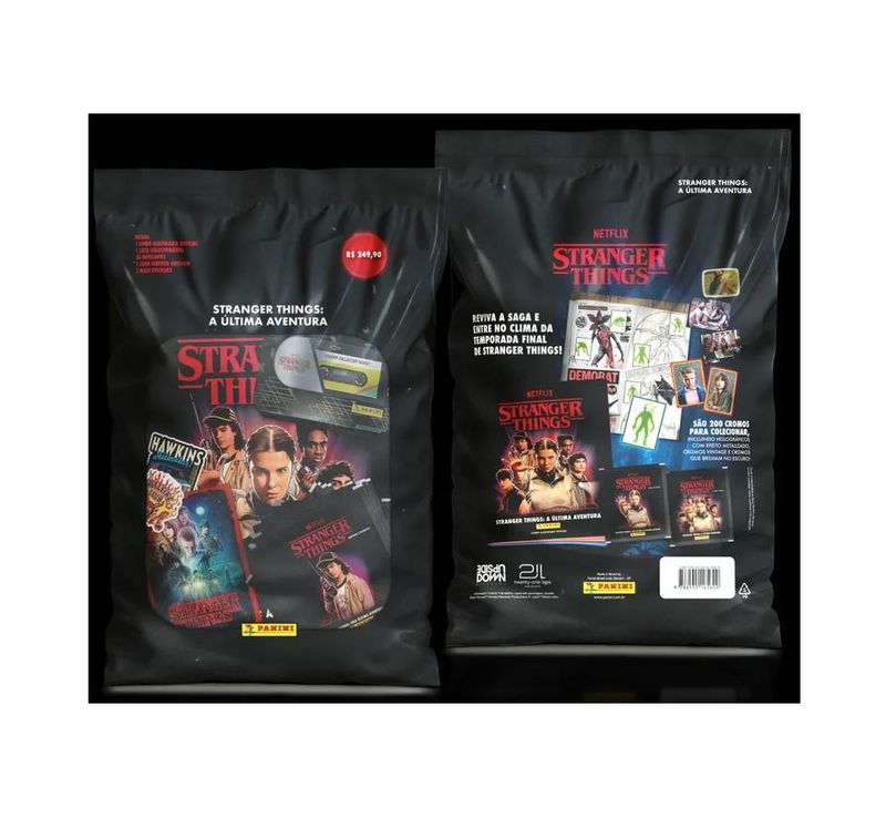 Eleven e seus amigos estão de volta a Hawkins para enfrentar, mais uma vez, a ameaça do Demogorgon. Neste álbum de 48 páginas, acompanhado de um pôster especial, você poderá reviver cada momento dessa incrível jornada. Relembre os passos mais marcantes da saga enquanto aguarda o desfecho mais esperado do ano!Colecione os 200 cromos, incluindo versões metalizadas e até cromos que brilham no escuro, perfeitos para nenhum membro do Hellfire Club botar defeito. E ainda tem mais: uma lata exclusiva, repleta de cards e figurinhas especiais, para completar sua coleção com estilo!