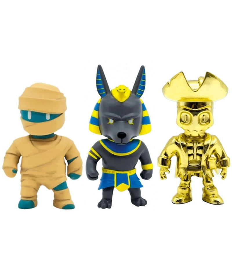 Stumble Guys - Pack com 3 Mini Figuras 3d - Hatshepsut, Anubis e Capt.Goldheart da Estrela.