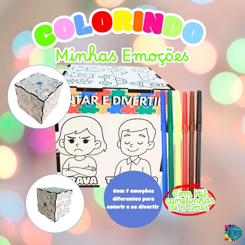 Super Cubo Infantil Para Colorir com Kit Canetinhas Colorindo Emoções