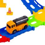Pista colorida com diversas peças sendo 36 ao todo. Contando com pistas de entrada e saidas, objetos de vizualização como postes, cones e placas de garagem. Um pequeno posto de gasolina para abastecer além de adesivos para colar por toda sua pista em suas respectivas peças.