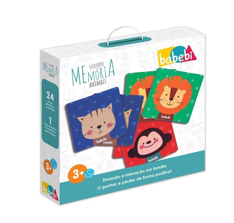 O Super Jogo da Memória Animais da Floresta é formado por 24 peças de 9 x 9cm em material cartonado super resistente e durável.