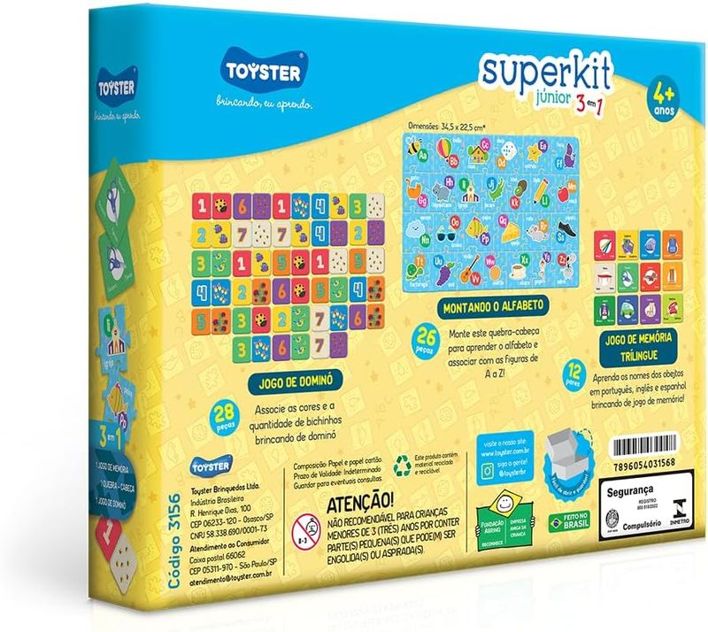 Super Kit Junior 3 em 1 C/quebra-Cabeça, Dominó e Jogo da Memória É Ideal Para Crianças Acima de 4 Anos.