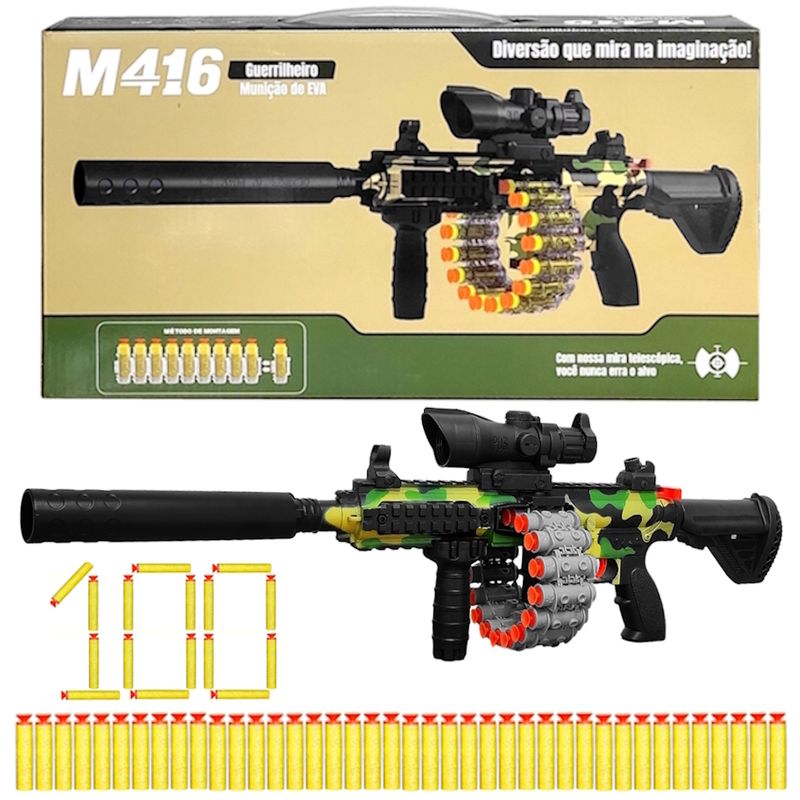 Super Lançador de Dardos de Espuma com Ventosa Mira com Lupa e Tambor Giratório - 100 dardos