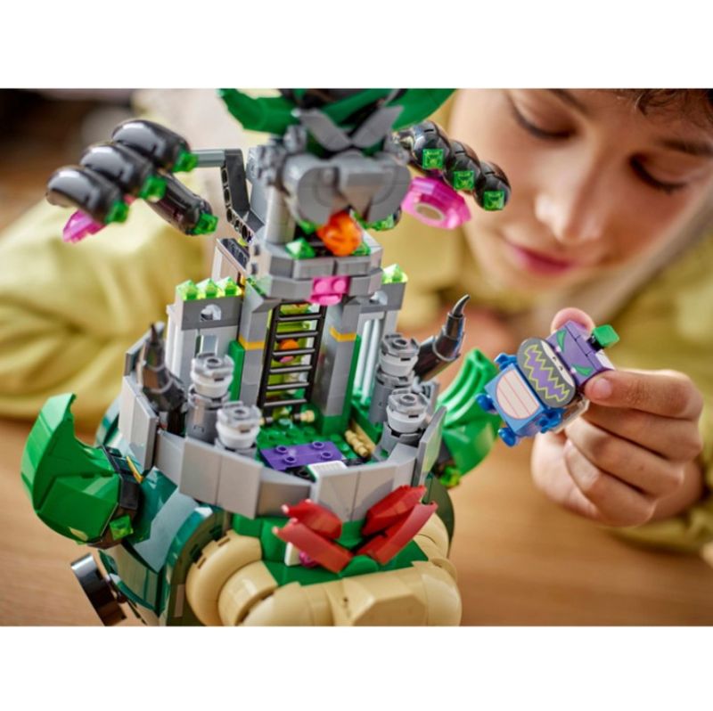 Hora de encarar o chefe final! O conjunto de construção de batalhas contra chefes LEGO Super Mario Príncipe Florian e Castelo Bowser (72042) dá vida ao final épico de Super Mario Bros Wonder para jovens fãs de jogos a partir de 9 anos. As crianças podem construir o enorme Castelo Bowser voador completo com ação de tiro de bolas de fogo, um interior detalhado incluindo uma cela para capturar o Príncipe Florian e a capacidade de levantar do seu suporte para que as crianças possam "voar" por uma sala para cenas de batalha dramáticas! Os jovens construtores podem ajudar as heroicas figuras Pink Yoshi e Príncipe Florian a enfrentar as ameaçadoras figuras Wonder Bowser Jr. e Fiery Note Piranha em emocionantes missões de resgate. O castelo apresenta elementos interativos incríveis que dão vida às batalhas! Os construtores podem levantar o Castelo Bowser do suporte e pousar para revelar o interior detalhado onde o Príncipe Florian está preso em sua cela, depois levantar o castelo inteiro do suporte (ou apenas levantar a parte superior) para "voar" e atirar bolas de fogo da boca de Bowser. As crianças podem colocar uma figura interativa LEGO Mario, LEGO Luigi ou LEGO Peach (dos conjuntos 71439, 71440, 71441 ou 72043 – cada um vendido separadamente) no conjunto para desencadear reações digitais e encenar a batalha final contra o chefe Super Mario Bros Wonder. Este conjunto de construção repleto de diversão é perfeito como presente para crianças que amam os jogos Super Mario, brinquedos de construção e brincadeiras de faz de conta cheias de ação. Os jovens jogadores podem combinar este conjunto com outros conjuntos LEGO Super Mario (cada um vendido separadamente) para criar um universo LEGO Super Mario completo. O aplicativo LEGO Super Mario fornece instruções digitais passo a passo e ideias criativas para orientar a construção; para uma lista de dispositivos Android e iOS compatíveis, visite LEGO.com/devicecheck. Contém 1.251 peças.