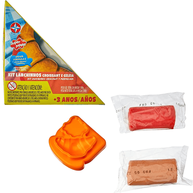 Super massa kit lanchinhos vem com 100 g de massa e 1 molde de croissant e geléia para tornar a brincadeira super apetitosa e divertida!