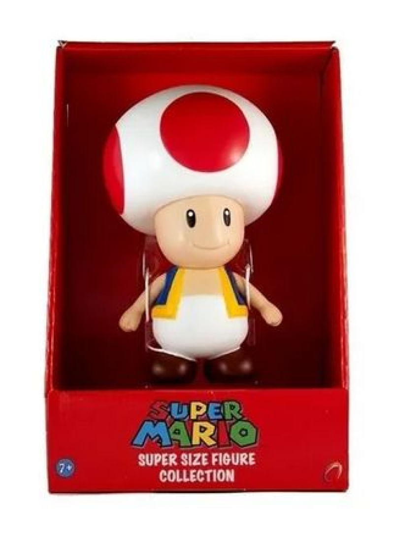 Estátua Toad da coleção Super Size Figure Collection – personagem Super Mario em PVC com aproximadamente 22?cm, braços e cabeça articulados, ideal para colecionadores.