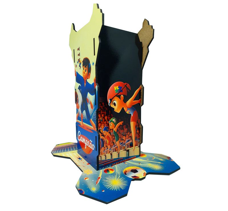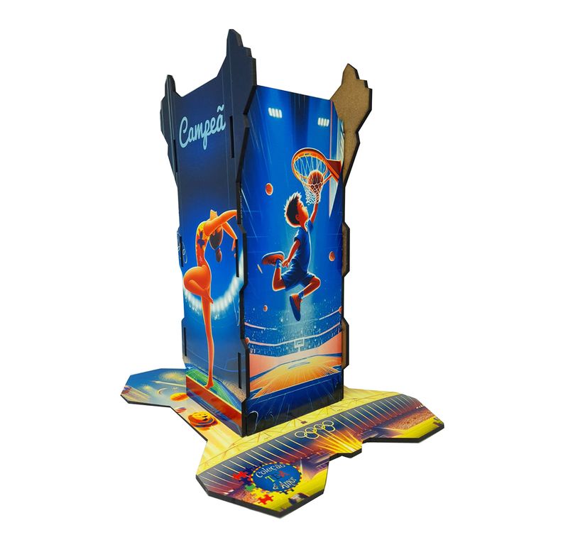 Cada detalhe foi projetado pensando na sensibilidade auditiva única dos nossos pequenos atletas autistas. O abafador de barulhos, gentil e eficaz, cria um oásis de calma em meio ao caos sonoro do mundo, proporcionando um ambiente acolhedor e tranquilo. Dê vida ao espaço do seu atleta com nosso suporte em MDF, decorado com artes coloridas exclusivas inspiradas nos esportes olímpicos! Cada peça é uma obra-prima única, desenhada com amor e cuidado, refletindo a alegria e a paixão pelo esporte.